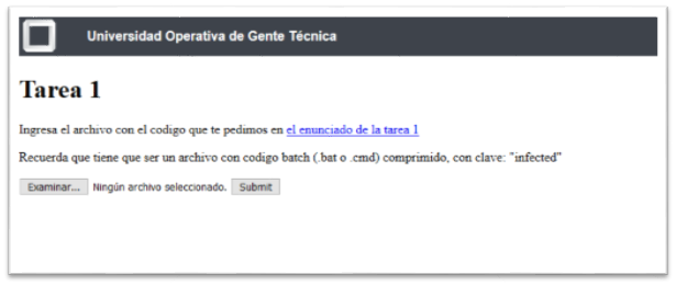 Al enviar un código similar al anterior, comprimido con la clave pedida al sistema web, aparece la siguiente pantalla: