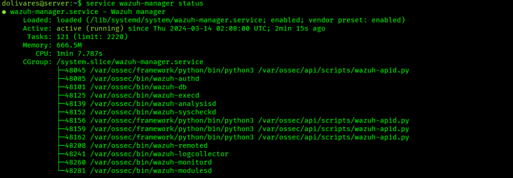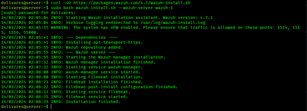 El flag “–wazuh-server” le indicará al script cual es el rol que se deberá instalar el script. Esta parte toma relevancia en caso de tener más de un “Servidor” para instalar, en ese caso se deberá cambiar el número de “Server” para que la instalación se realice correctamente.