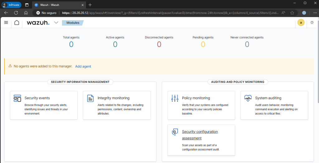 Con esto tenemos armada la base de nuestro cluster Wazuh, se conectan entre ellos y nos podemos autenticar frente al “Dashboard”, que nos va a dar la facilidad para la mayoría de las configuraciones.