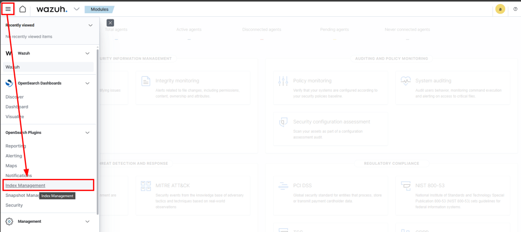 Para configurarlo en el servidor haremos clic en el icono de menú y luego haremos clic en “Index Management”: