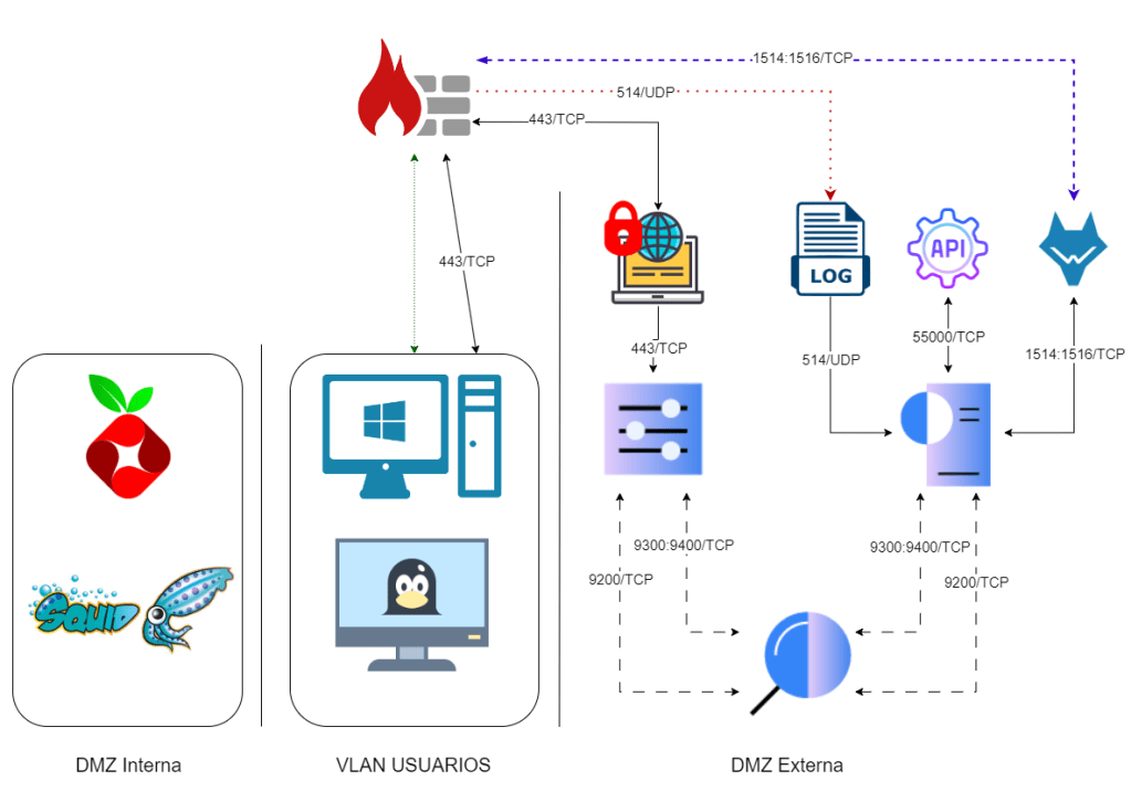 • El cluster de Wazuh (Indexer, Server y Dashboard)