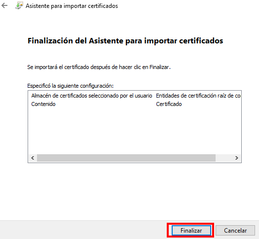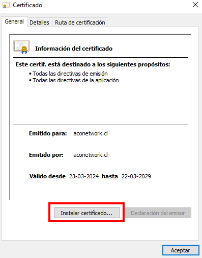 Este paso se debe realizar solo si la CA que se utilizó para firmar el certificado no ha sido instalada. Si ese fuera el caso, este punto puede ser omitido.
