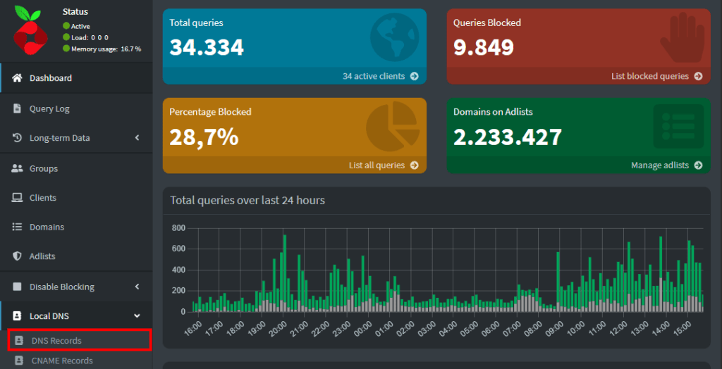 Para esto iniciamos sesión en el portal de administración web y nos dirigimos a “Local DNS à DNS Records”