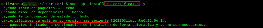 Luego nos aseguraremos de tener instalado la utilidad “ca-certificates”: