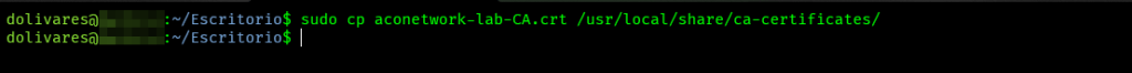 Continuaremos copiando el certificado de la CA en ruta “/usr/local/share/ca-certificates”: