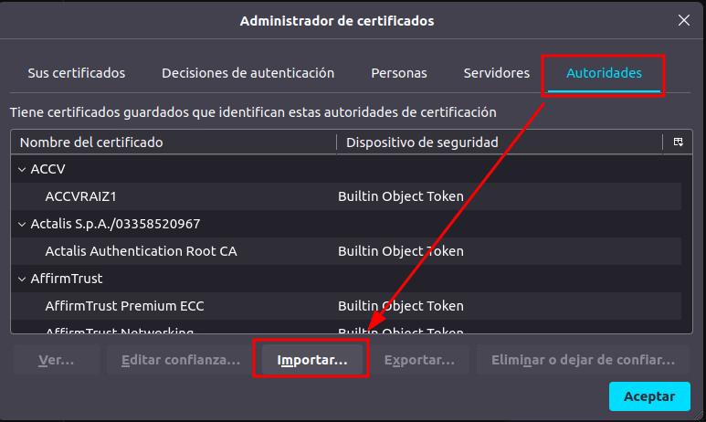 Luego nos dirigimos a la pestaña “Autoridades” y seleccionamos “Importar”: