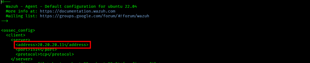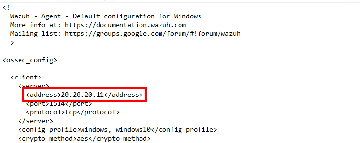 Debemos revisar la sección address del archivo “C:\Program Files (x86)\ossec-agent\ossec.conf”