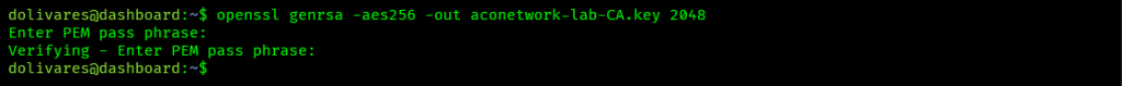 openssl genrsa -aes256 -out aconetwork-lab-CA.key 2048