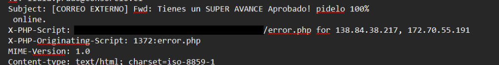 Con esto, podemos saber cómo envían los correos ya que está escrito literalmente dentro del encabezado “X-PHP-Script” la ruta completa (nombre del servidor y URL) del script PHP usado para el envío (mailer).