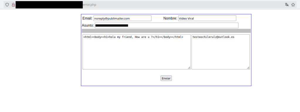 Este tipo de mailer lo habíamos visto hace 4 años (en el siguiente artículo Sobre algunos envíos de phishing en Chile) y sabemos que a nivel de código tienen una puerta trasera para poder subir archivos.