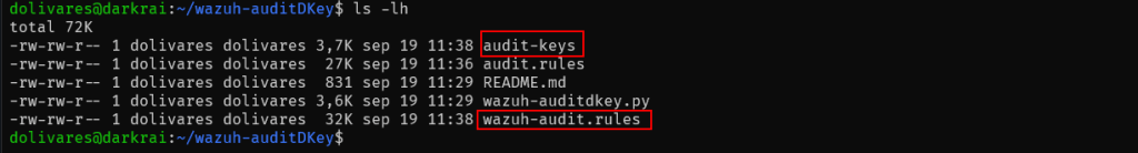 Una vez ejecutado el script se generarán dos archivos: “audit-keys” y “wazuh-audit.rules”.