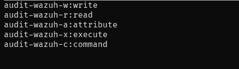 Pero antes de continuar tendremos que realizar algunas modificaciones en el archivo “audit.rule” que tenemos configurado y que modificaremos para que el flag “key” sea representativo a la acción realizada “Acceso, Escritura, Ejecución o modificación”, siendo éste un requerimiento de Wazuh. Ref: Configuration – Monitoring system calls · Wazuh documentation.