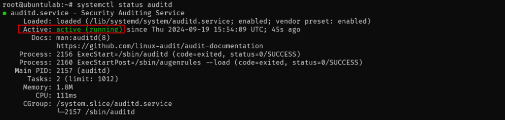 Verificaremos que el servicio se esté ejecutando correctamente utilizando el siguiente comando: