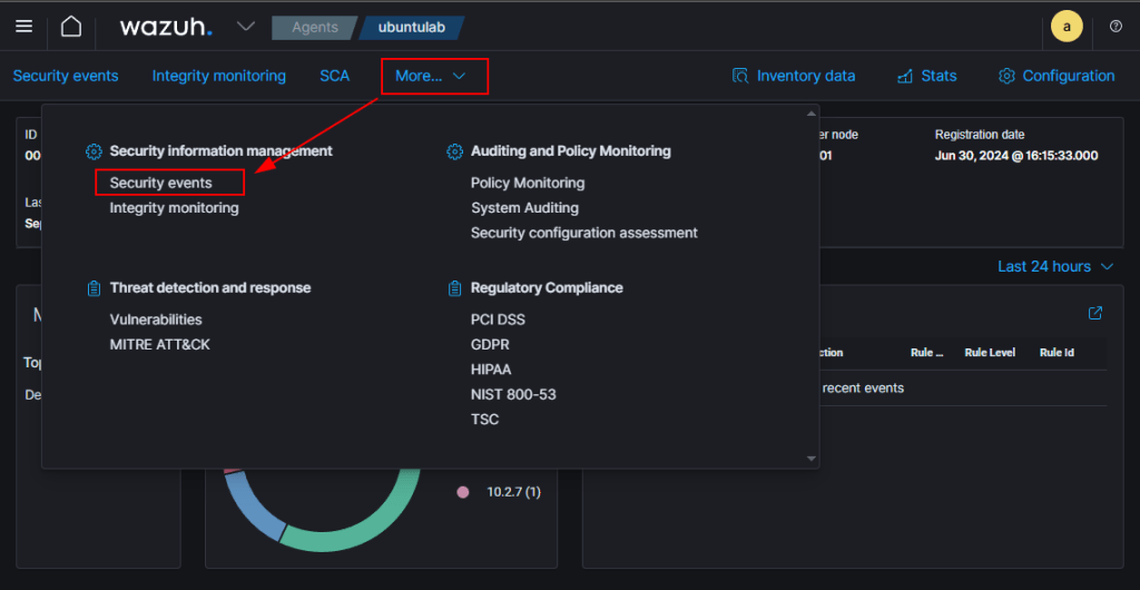 Luego deberemos hacer clic en “More…” y luego en “Security events”.