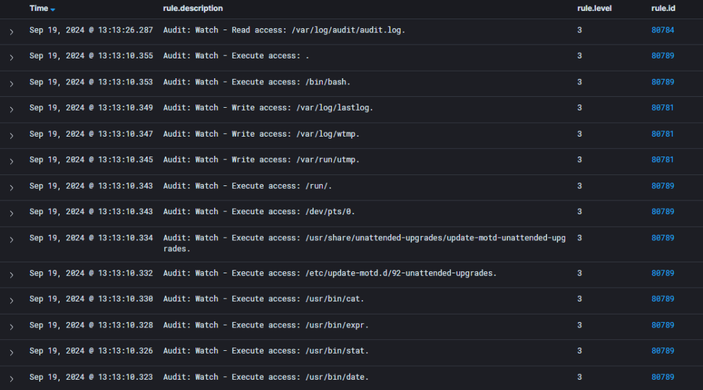 | Campos de Interés | data.audit.auid data.audit.euid data.audit.exe data.audit.session data.audit.execve.a |