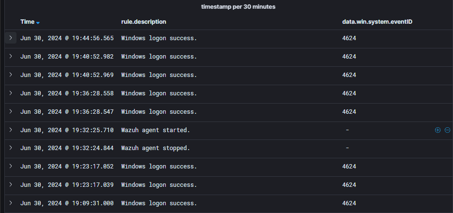 Ahora, nos dirigimos a la consola web de Wazuh y revisaremos los eventos de auditoría del equipo monitoreado.