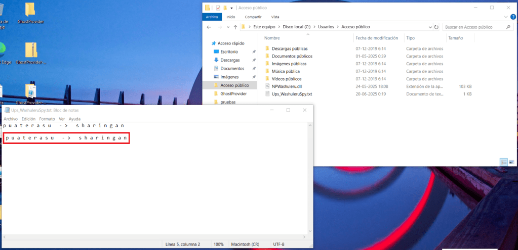 Al abrir Ups_WashuleruSpy.txt, vemos que las credenciales se capturan exitosamente, después del inicio de sesión.