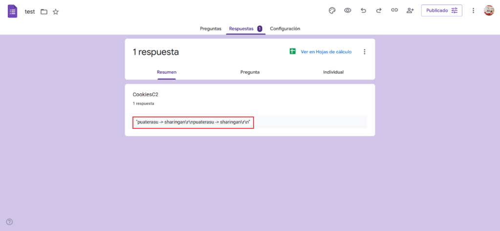 Desde el formulario, vemos que las credenciales fueron obtenidas por el adversario, enviadas desde la máquina infectada (entorno de pruebas).
