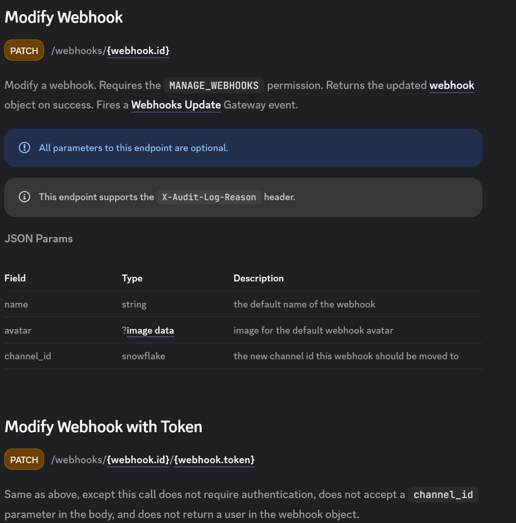 Este cambio a Discord genera un problema para los investigadores de este tipo de estafas, según la documentación de estas API no se puede obtener mucha de la información enviada al canal a través de la misma.